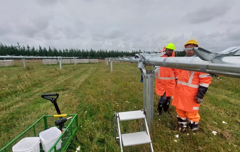 The Clandeboye Solar Farm will generate 43 GWh of renewable electricity annually and will cover circa 42ha and incorporate around 45,000 tracking solar panels. The site will be connected to the Alpine Energy distribution network.