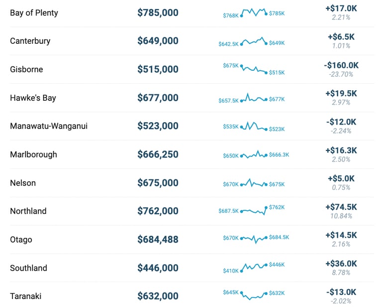 This table shows the median sale price for a property in every region in New Zealand. Use the search bar to find you region. This includes data up to January 2024.